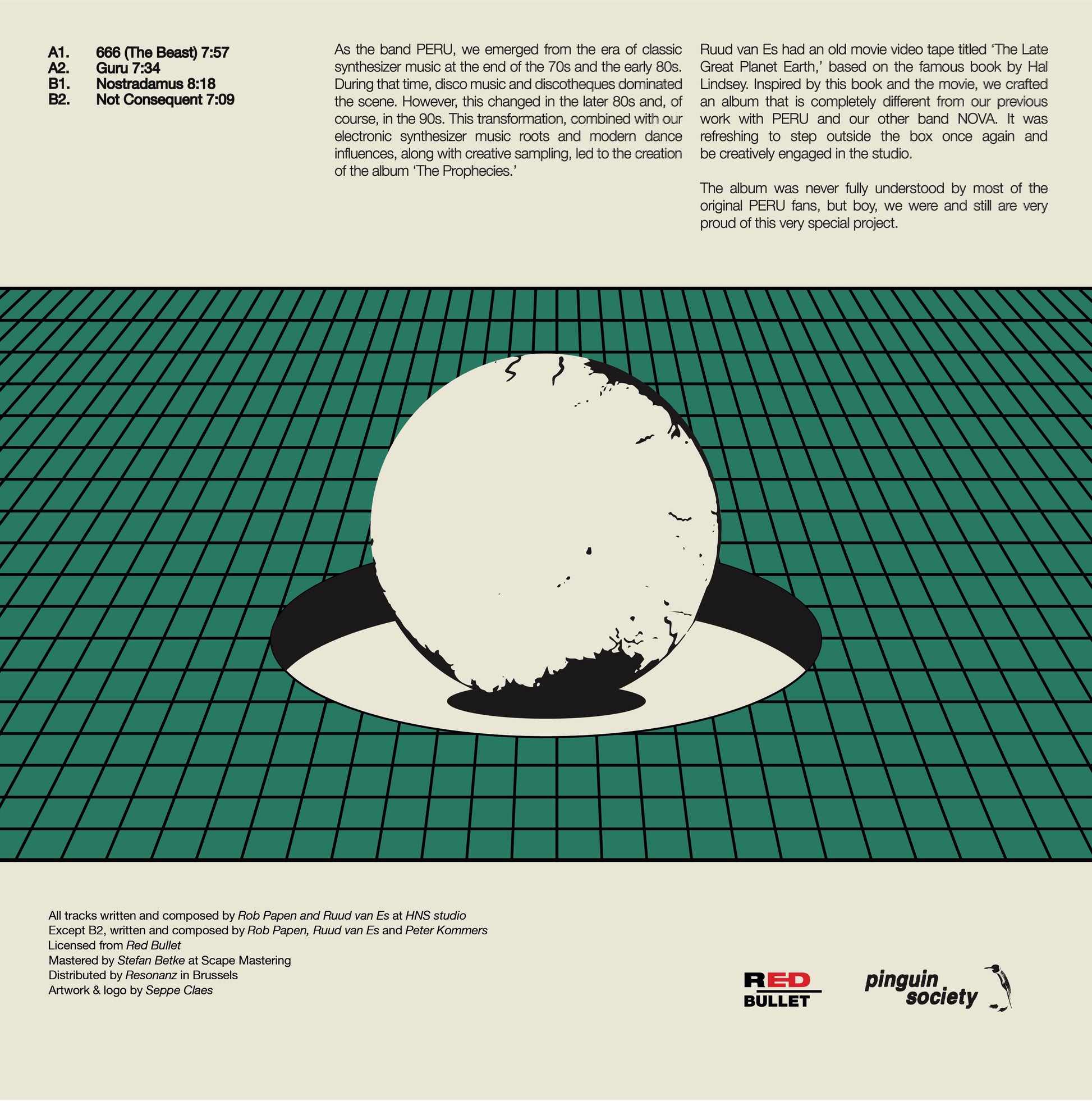 After a brief hiatus, Pinguin Society returns with a selection of tracks from Peru's album The Prophecies. This album marked a significant departure from their previous work, as the band experimented with new styles and explored different musical paths. Originally released in 1993, The Prophecies was initially misunderstood by fans but has since gained newfound relevance. Inspired by the book and movie The Late Great Planet Earth, Peru members Peter Kommers, Rob Papen, and Ruud van Es created an album that showcased their creative versatility. Now, for the first time, this collection is available on vinyl, making it number 003 in the Pinguin catalog.