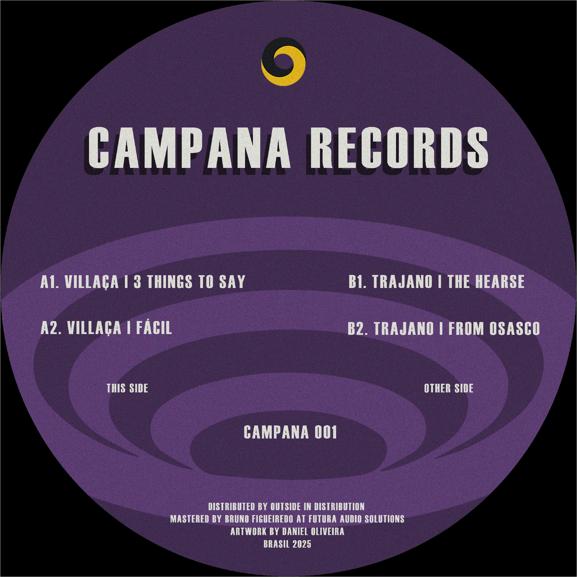 A new label is born. With artists based both in Barcelona and São Paulo, CAMPANA Records' first release showcases the personalities of two of its members with a split EP. On the A side, Villaça brings two techno-trance tracks made in 2023 for his live act, and after two years of testing these tracks all around Latin and North America, he arranged these high-energy pieces for this release! And on the other side, we have the always evolving, fresh, and intelligent dark grooves from Trajano - two tracks made with care that showcase his unique vision for dance floors. Above all, this release is about resilience, friendship, and dedication from two Brazilian artists who have a deep love for making people dance with underground music.